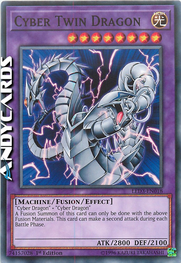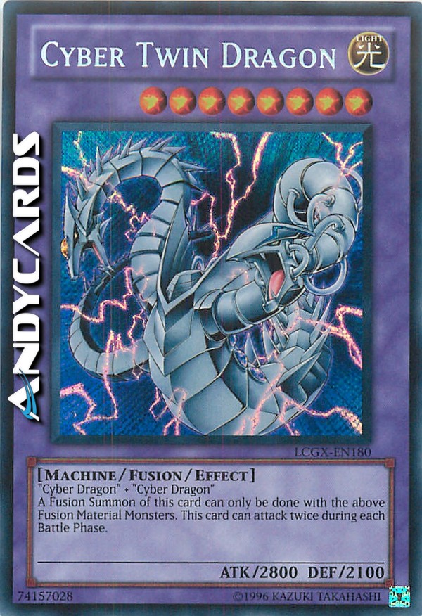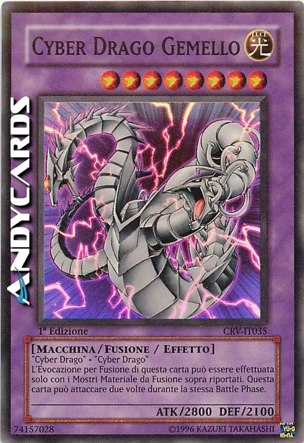 CYBER DRAGO + CYBER DRAGO. L'evocazione x fusione di questa carta può essere effettuata solo con i mostri materiale da fusione soprariportati. Questa carta può attaccare 2 volte dutante la stessa BATTLE PHASE.