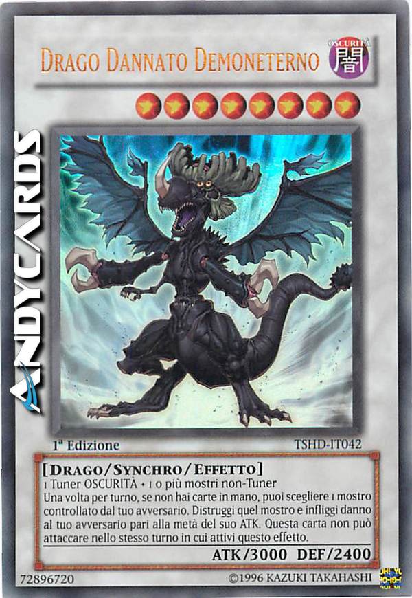 Una volta per turno, se non hai carte in mano, puoi scegliere 1 mostro controllato dal tuo avversario. Distruggi quel mostro e infliggi danno al tuo avversario pari alla metà del suo ATK. Questa carta non può attaccare nello stesso turno in cui attivi questo effetto.