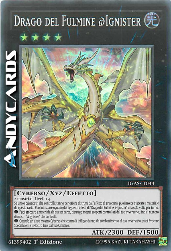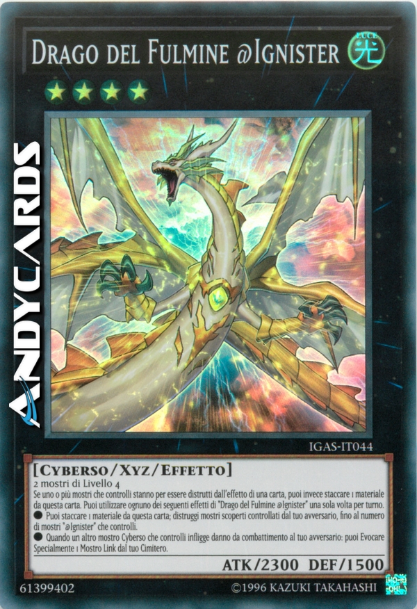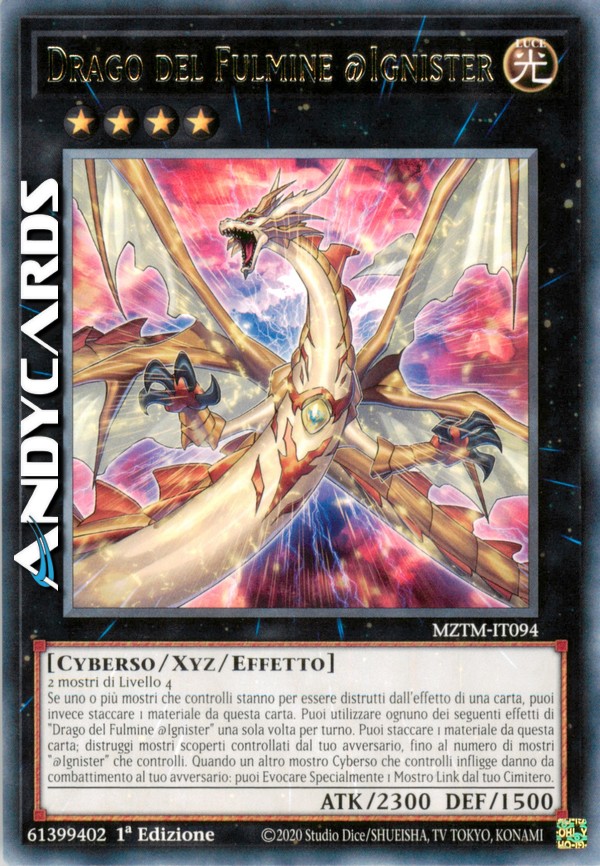 Se uno o più mostri che controlli stanno per essere distrutti dall'effetto di una carta, puoi invece staccare 1 materiale da questa carta. Puoi utilizzare ognuno dei seguenti effetti di "Drago del Fulmine @Ignister" una sola volta per turno.