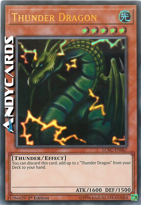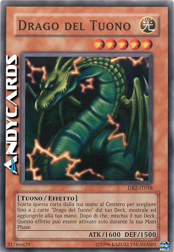 Scarta questa carta dalla tua mano al Cimitero per scegliere fino a 2 carte "Drago del Tuono" dal tuo Deck, mostrale ed aggiungerle alla tua mano. Dopo di che, mischia il tuo Deck. Questo effetto può essere attivato solo durante la tua Main Phase. NUOVO TESTO: Scarta questa carta dalla tua mano per scegliere fino a 2 carte "Drago del Tuono" dal tuo Deck, mostrale ed aggiungerle alla tua mano. Dopo di che, mischia il tuo Deck. Questo effetto può essere attivato solo durante la tua Main Phase.
