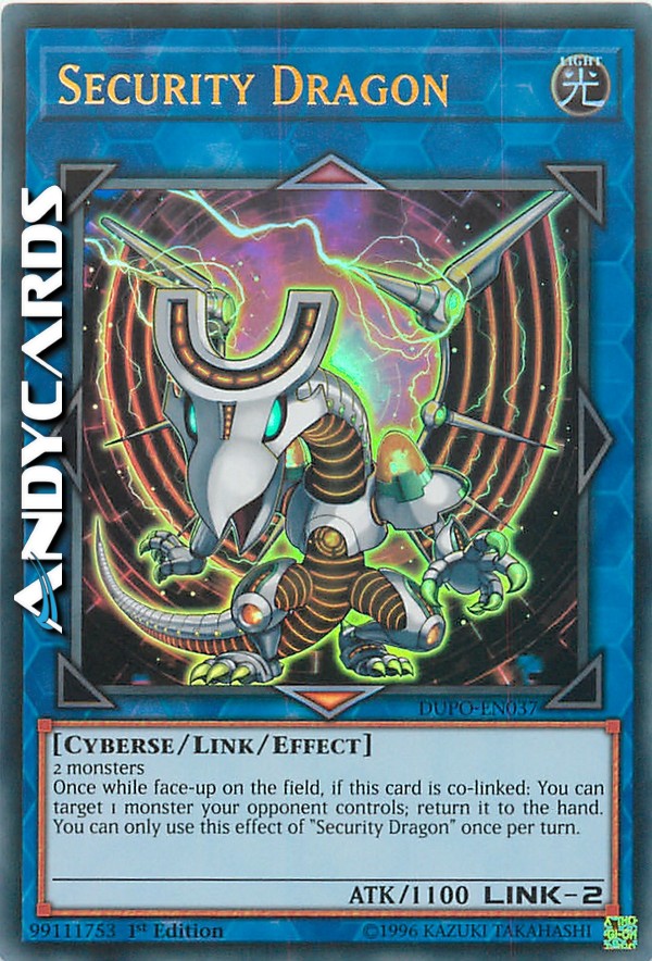 Once while face-up on the field, if this card is co-linked: You can target 1 monster your opponent controls; return it to the hand. You can only use this effect of "Security Dragon" once per turn.