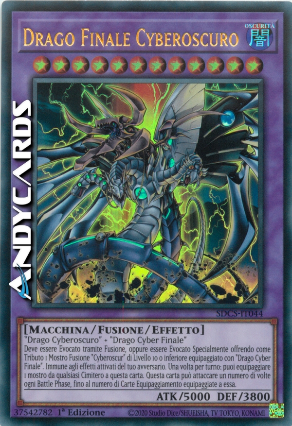 Deve essere Evocato tramite Fusione, oppure essere Evocato Specialmente offrendo come Tributo 1 Mostro Fusione "Cyberoscur" di Livello 10 o inferiore equipaggiato con "Drago Cyber Finale". Immune agli effetti attivati del tuo avversario. Una volta per turno: puoi equipaggiare 1 mostro da qualsiasi Cimitero a questa carta. Questa carta può attaccare un numero di volte ogni Battle Phase, fino al numero di Carte Equipaggiamento equipaggiate a essa.