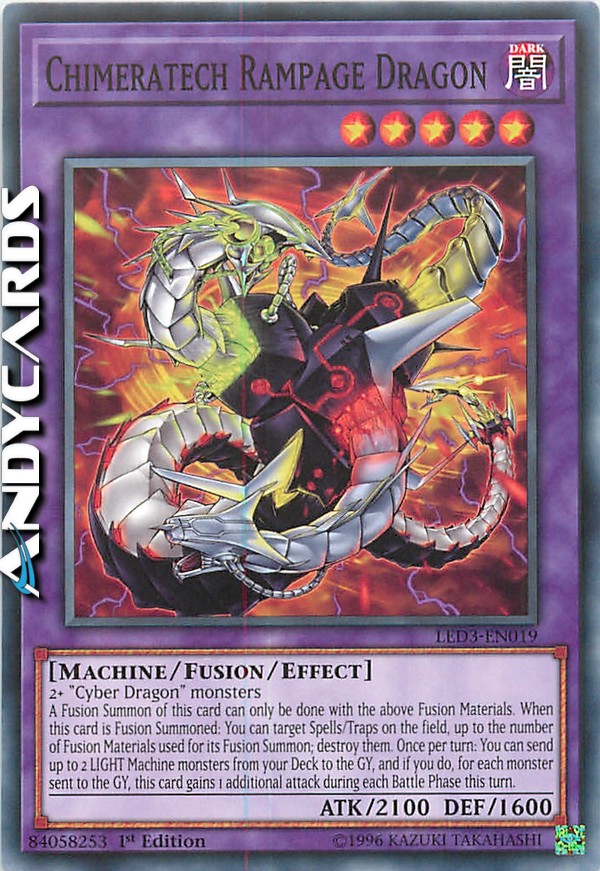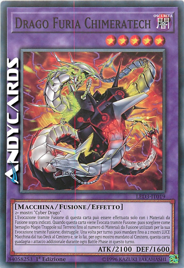 2 o più mostri "Cyber Drago" - L'Evocazione tramite Fusione di questa carta può essere effettuata solo con i Materiali da Fusione sopra indicati. Quando questa carta viene Evocata tramite Fusione: puoi scegliere come bersaglio Carte Magia/Trappola sul Terreno fino al massimo al numero di Materiali da Fusione utilizzati per la sua Evocazione tramite Fusione; distruggile. Una volta per turno: puoi mandare fino a 2 mostri LUCE di Tipo Macchina dal tuo Deck al Cimitero e, se lo fai, per ogni mostro mandato al Cimitero, questa carta guadagna 1 attacco addizionale durante ogni Battle Phase in questo turno.