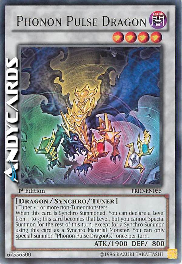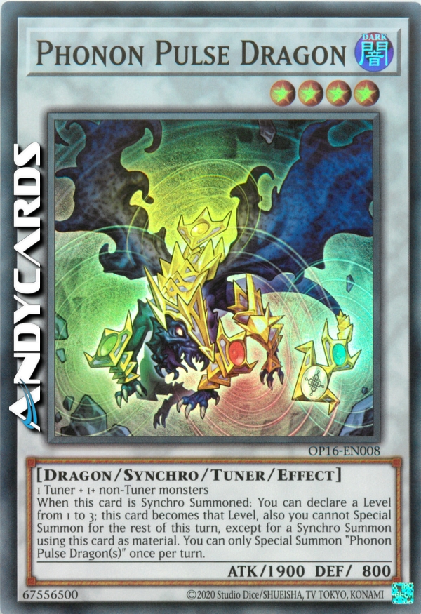 When this card is Synchro Summoned: You can declare a Level from 1 to 3; this card becomes that Level, also you cannot Special Summon for the rest of this turn, except for a Synchro Summon using this card as material. You can only Special Summon "Phonon Pulse Dragon(s)" once per turn.
