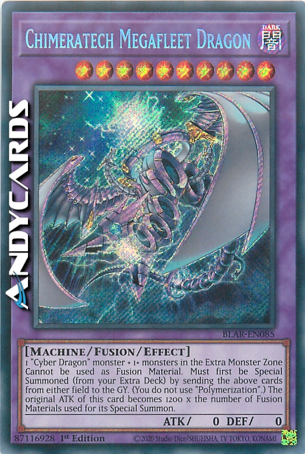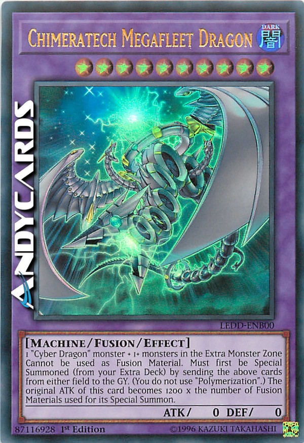 1 mostro "Cyber Drago" + 1+ mostri nella Zona Mostri Extra - Non può essere utilizzato come Materiale da Fusione. Deve prima essere Evocato Specialmente (dal tuo Extra Deck) mandando le carte sopra indicate da qualsiasi Terreno al Cimitero. (Non utilizzi "Polimerizzazione".) L'ATK originale di questa carta diventa 1200 x il numero di Materiali da Fusione utilizzati per la sua Evocazione Speciale.
