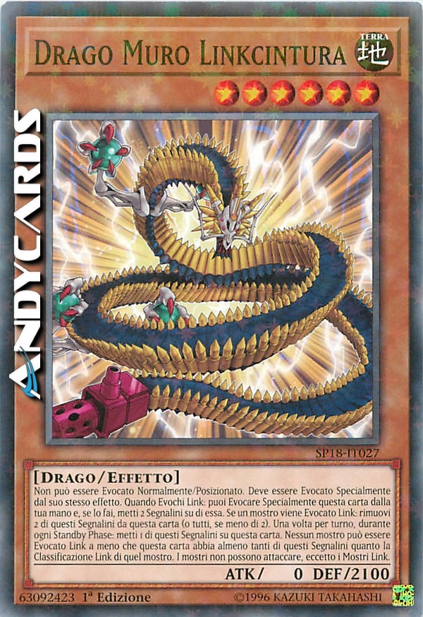 Non può essere Evocato Normalmente/Posizionato. Deve essere Evocato Specialmente dal suo stesso effetto. Quando Evochi Link: puoi Evocare Specialmente questa carta dalla tua mano e, se lo fai, metti 2 Segnalini su di essa. Se un mostro viene Evocato Link: rimuovi 2 di questi Segnalini da questa carta (o tutti, se meno di 2). Una volta per turno, durante ogni Standby Phase: metti 1 di questi Segnalini su questa carta. Nessun mostro può essere Evocato Link a meno che questa carta abbia almeno tanti di questi Segnalini quanto la Classificazione Link di quel mostro. I mostri non possono attaccare, eccetto i Mostri Link.