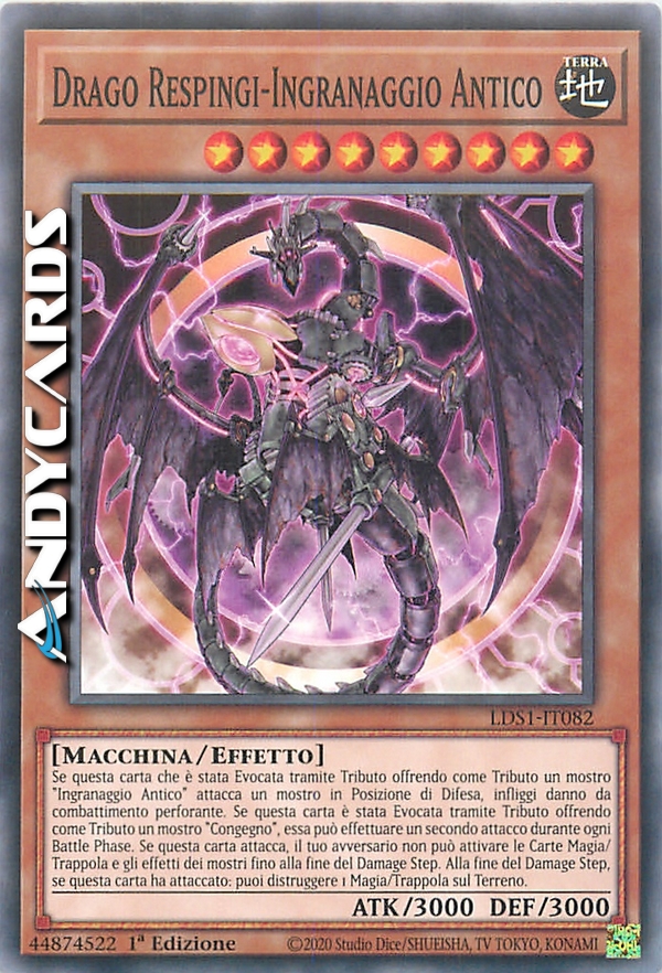 Se questa carta che è stata Evocata tramite Tributo offrendo come Tributo un mostro "Ingranaggio Antico" attacca un mostro in Posizione di Difesa, infliggi danno da combattimento perforante al tuo avversario. Se questa carta è stata Evocata tramite Tributo offrendo come Tributo un mostro "Congegno", essa può effettuare un secondo attacco durante ogni Battle Phase. Se questa carta attacca, le Carte Magia/Trappola e gli effetti dei mostri del tuo avversario non possono essere attivati fino alla fine del Damage Step. Alla fine del Damage Step, se questa carta ha attaccato: puoi distruggere 1 Carta Magia/Trappola sul Terreno.