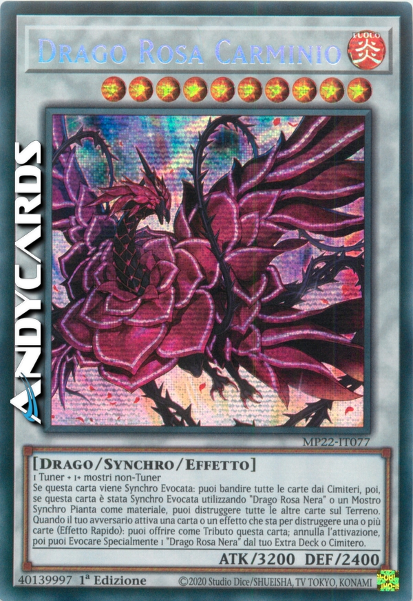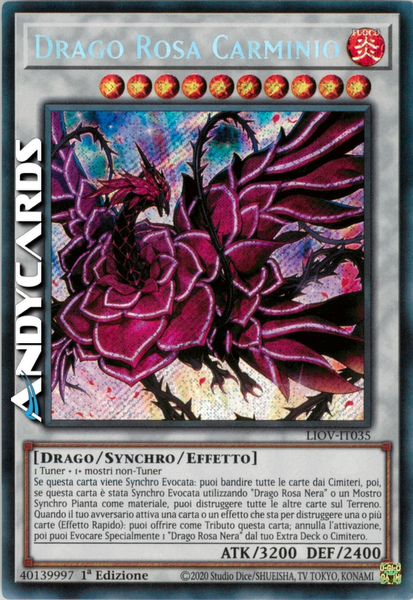 1 Tuner + 1+ mostri non-Tuner Se questa carta viene Synchro Evocata: puoi bandire tutte le carte dai Cimiteri, poi, se questa carta è stata Synchro Evocata utilizzando "Drago Rosa Nera" o un Mostro Synchro Pianta come materiale, puoi distruggere tutte le altre carte sul Terreno. Quando il tuo avversario attiva una carta o un effetto che sta per distruggere una o più carte (Effetto Rapido): puoi offrire come Tributo questa carta; annulla l'attivazione, poi puoi Evocare Specialmente 1 "Drago Rosa Nera" dal tuo Extra Deck o Cimitero.