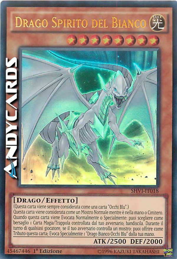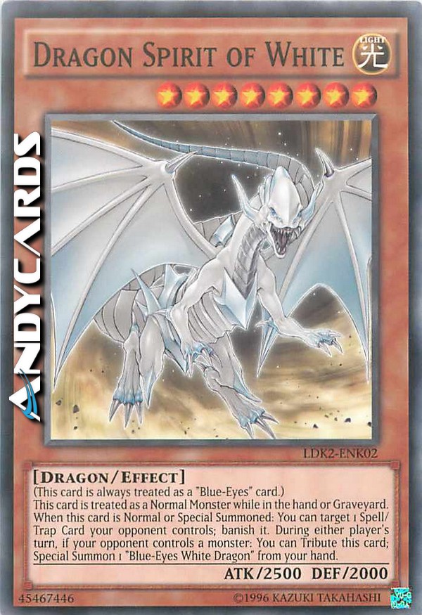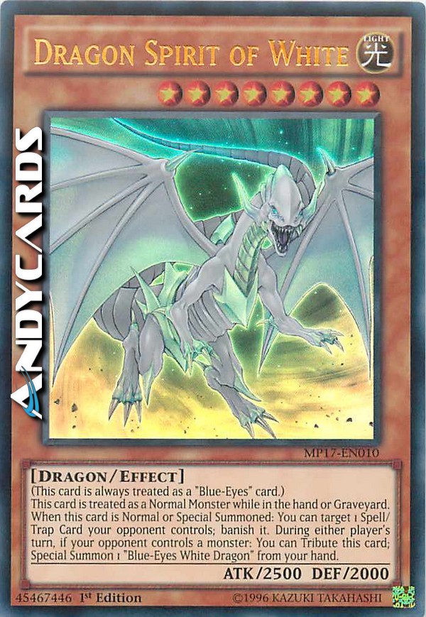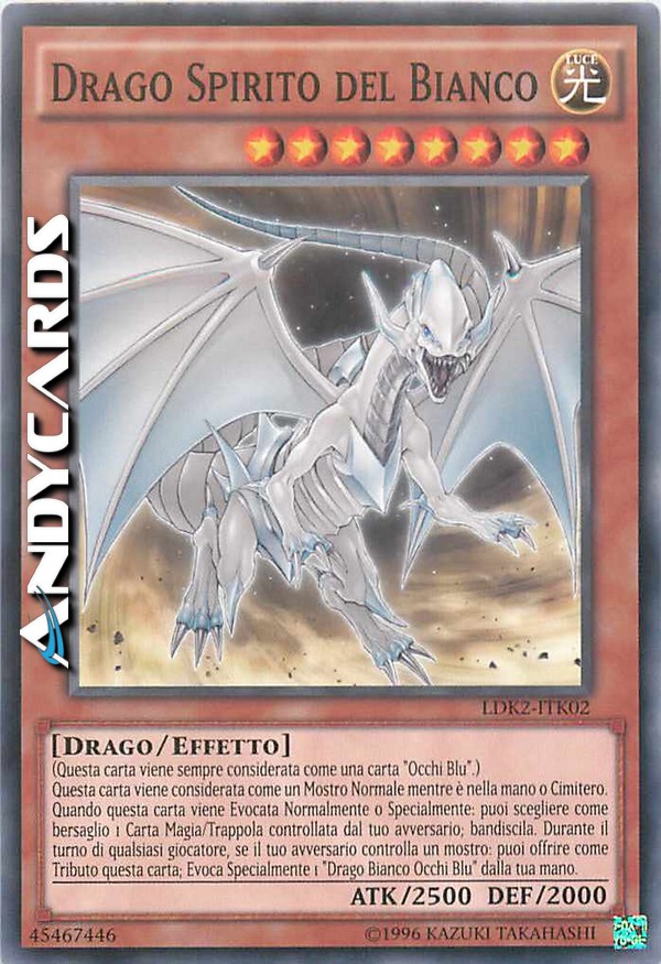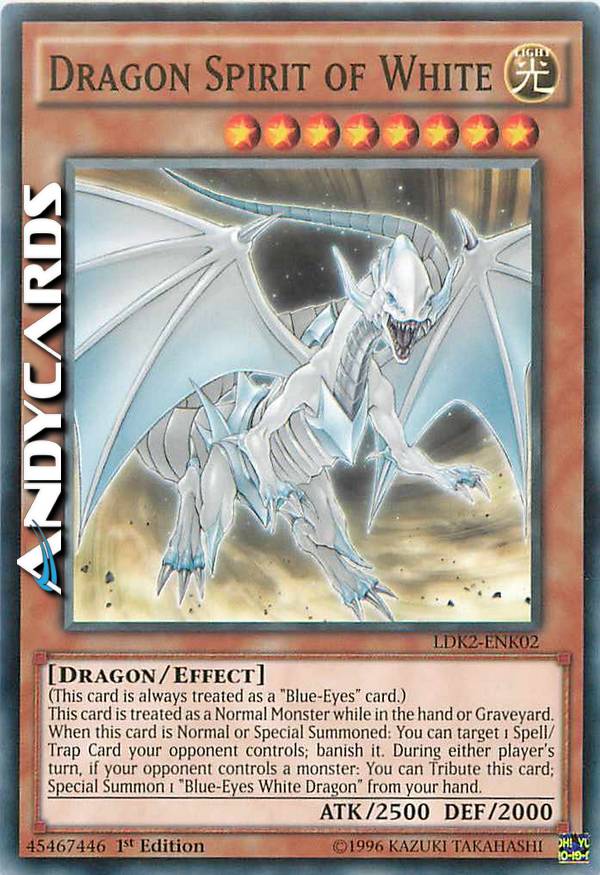 Questa carta viene considerata come un Mostro Normale mentre è nella mano o Cimitero. Quando questa carta viene Evocata Normalmente o Specialmente: puoi scegliere come bersaglio 1 Magia/Trappola controllata dal tuo avversario; bandiscila. Se il tuo avversario controlla un mostro (Effetto Rapido): puoi offrire come Tributo questa carta; Evoca Specialmente 1 "Drago Bianco Occhi Blu" dalla tua mano.