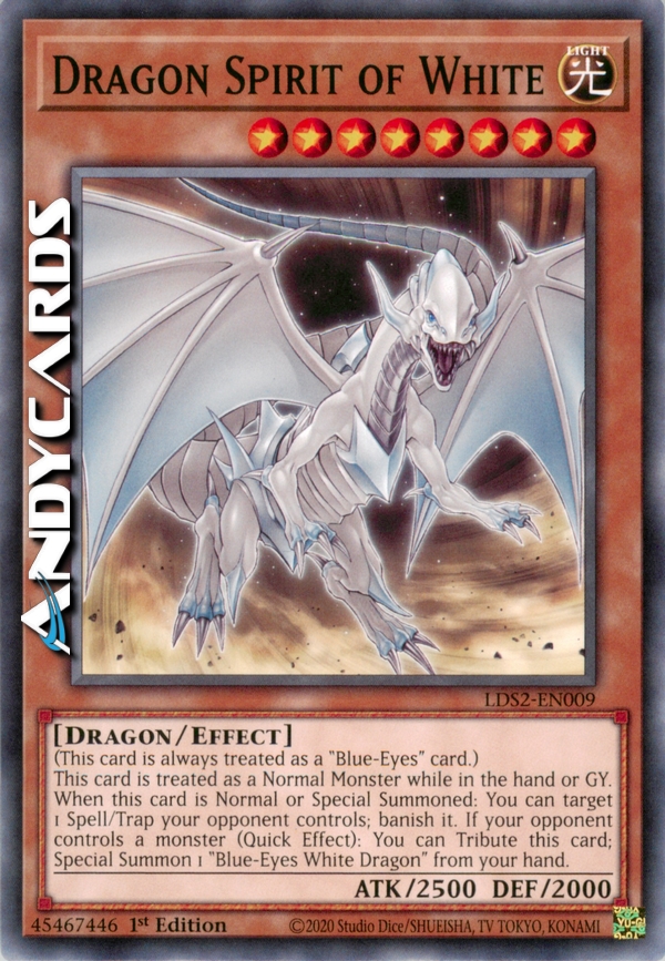 This card is treated as a Normal Monster while in the hand or GY. When this card is Normal or Special Summoned: You can target 1 Spell/Trap your opponent controls; banish it. If your opponent controls a monster (Quick Effect): You can Tribute this card; Special Summon 1 "Blue-Eyes White Dragon" from your hand.