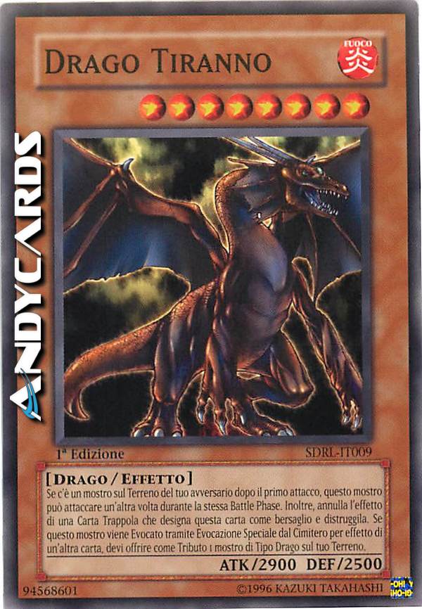 Durante la tua Battle Phase, se il tuo avversario controlla un mostro dopo il primo attacco di questa carta, questa carta può effettuare un secondo attacco. Annulla qualsiasi effetto di Trappola che sceglie questa carta sul Terreno come bersaglio e, se lo fai, distruggi quella Trappola. Questa carta non può essere Evocata Specialmente dal Cimitero, a meno che tu offra come Tributo 1 mostro Drago.