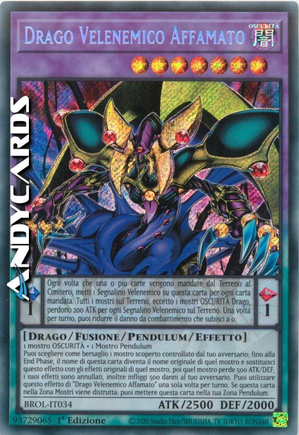 Effetto Pendulum: Ogni volta che una o più carte vengono mandate dal Terreno al Cimitero, metti 1 Segnalino Velenemico su questa carta per ogni carta mandata. Tutti i mostri sul Terreno, eccetto i mostri OSCURITÀ Drago, perdono 200 ATK per ogni Segnalino Velenemico sul Terreno. Una volta per turno, puoi ridurre il danno da combattimento che subisci a 0.