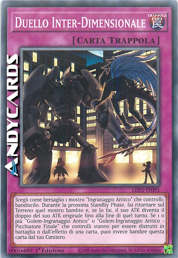 Scegli come bersaglio 1 mostro "Ingranaggio Antico" che controlli; bandiscilo. Durante la prossima Standby Phase, fai ritornare sul Terreno quel mostro bandito e, se lo fai, il suo ATK diventa il doppio del suo ATK originale fino alla fine di quel turno. Se 1 o più "Golem-Ingranaggio Antico" o "Golem-Ingranaggio Antico - Picchiatore Finale" che controlli stanno per essere distrutti in battaglia o dall'effetto di una carta, puoi invece bandire questa carta dal tuo Cimitero.