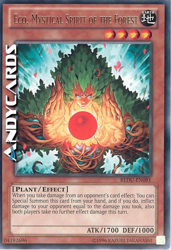 Quando subisci danno dall'effetto di una carta dell'avversario: puoi Evocare Specialmente questa carta dalla tua mano e, se lo fai, infliggi al tuo avversario danno pari al danno che hai subito, inoltre entrambi i giocatori non subiscono altri danni da effetto in questo turno.