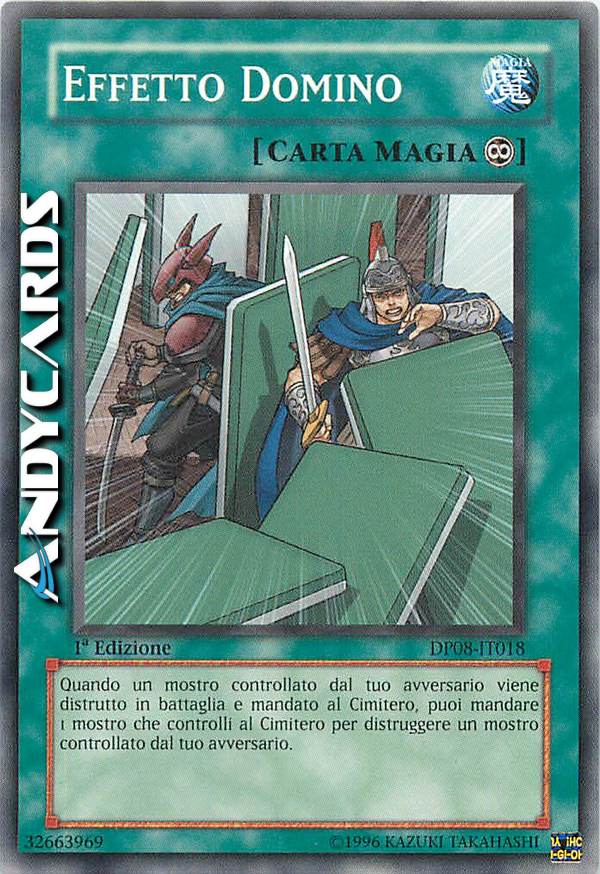 Quando un mostro controllato dal tuo avversario viene distrutto in battaglia e mandato al Cimitero, puoi mandare 1 mostro che controlli al Cimitero per distruggere un mostro controllato dal tuo avversario.