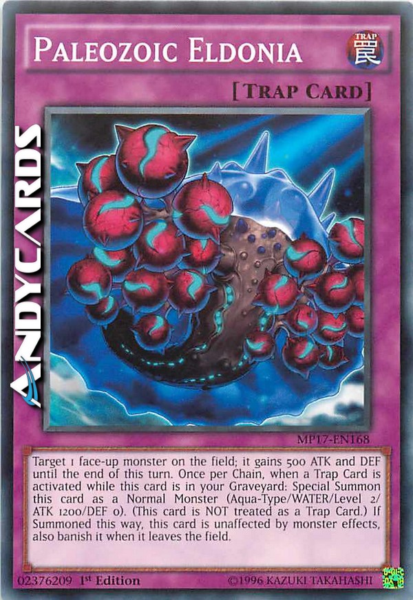 Target 1 face-up monster on the field; it gains 500 ATK and DEF until the end of this turn. Once per Chain, when a Trap Card is activated while this card is in your Graveyard: Special Summon this card as a Normal Monster (Aqua-Type/WATER/Level 2/ATK 1200/DEF 0). (This card is NOT treated as a Trap Card.) If Summoned this way, this card is unaffected by monster effects, also banish it when it leaves the field.