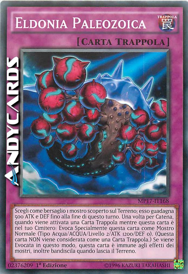 Scegli come bersaglio 1 mostro scoperto sul Terreno; esso guadagna 500 ATK/DEF fino alla fine di questo turno. Una volta per Catena, quando viene attivata una Carta Trappola mentre questa carta è nel tuo Cimitero: puoi Evocare Specialmente questa carta come Mostro Normale (Acqua/ACQUA/Livello 2/ATK 1200/DEF 0). (Questa carta NON viene considerata come una Trappola.) Se viene Evocata in questo modo, questa carta è immune agli effetti dei mostri, inoltre bandiscila quando lascia il Terreno.