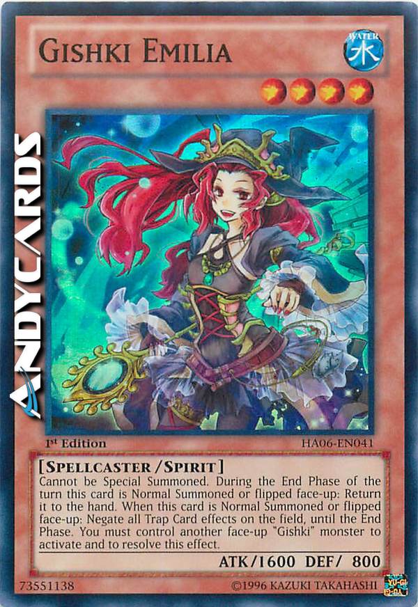 Non può essere Evocato Specialmente. Durante la End Phase del turno in cui questa carta viene Evocata Normalmente o scoperta: falla ritornare nella mano. Quando questa carta viene Evocata Normalmente o scoperta: annulla gli effetti di tutte le Carte Trappola sul Terreno, fino alla End Phase. Devi controllare un altro mostro "Gishki" scoperto per attivare e risolvere questo effetto.