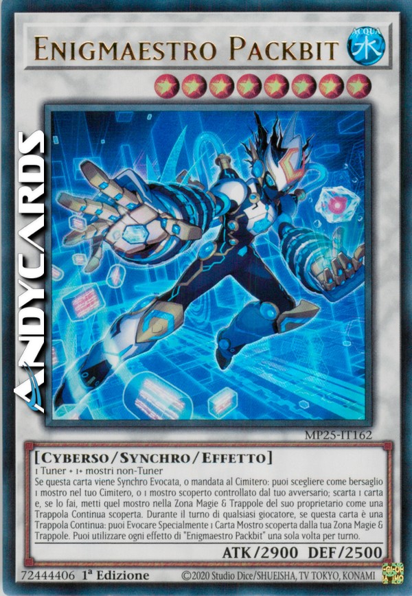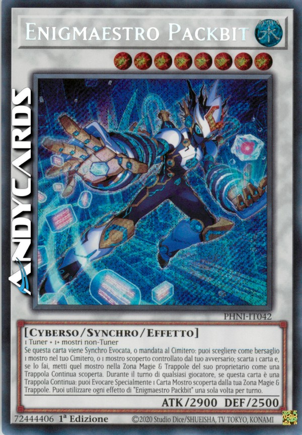 Se questa carta viene Synchro Evocata, o mandata al Cimitero: puoi scegliere come bersaglio 1 mostro nel tuo Cimitero, o 1 mostro scoperto controllato dal tuo avversario; scarta 1 carta e, se lo fai, metti quel mostro nella Zona Magie & Trappole del suo proprietario come una Trappola Continua scoperta. Durante il turno di qualsiasi giocatore, se questa carta è una Trappola Continua: puoi Evocare Specialmente 1 Carta Mostro scoperta dalla tua Zona Magie & Trappole. Puoi utilizzare ogni effetto di "Enigmaestro Packbit" una sola volta per turno.