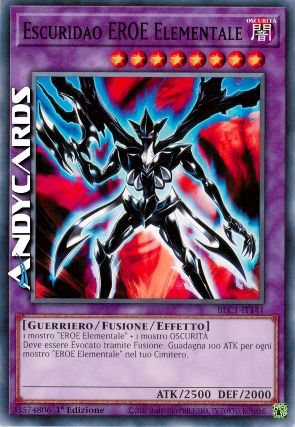 Deve essere Evocato tramite Fusione. Guadagna 100 ATK per ogni mostro "EROE Elementale" nel tuo Cimitero.