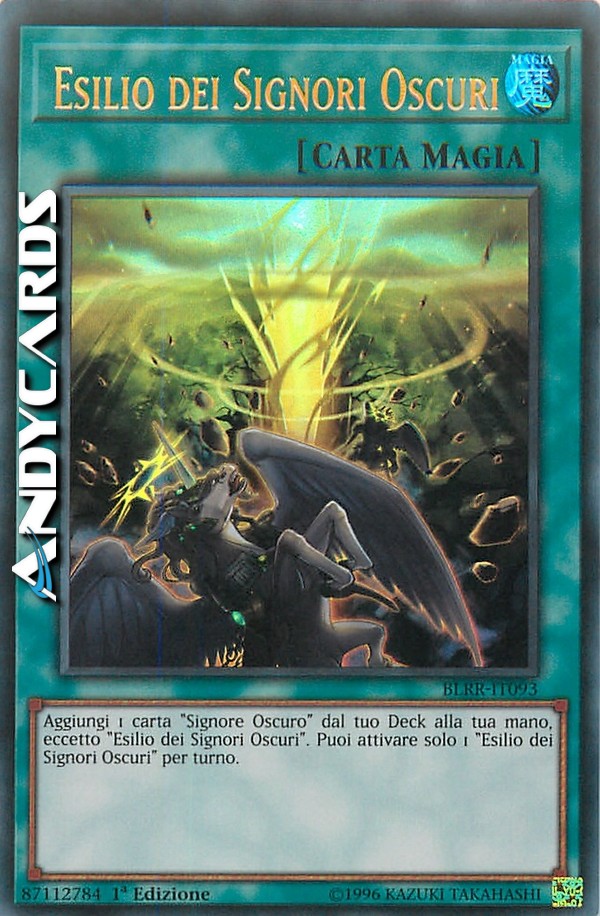 Aggiungi 1 carta "Signore Oscuro" dal tuo Deck alla tua mano, eccetto "Esilio dei Signori Oscuri". Puoi attivare solo 1 "Esilio dei Signori Oscuri" per turno.