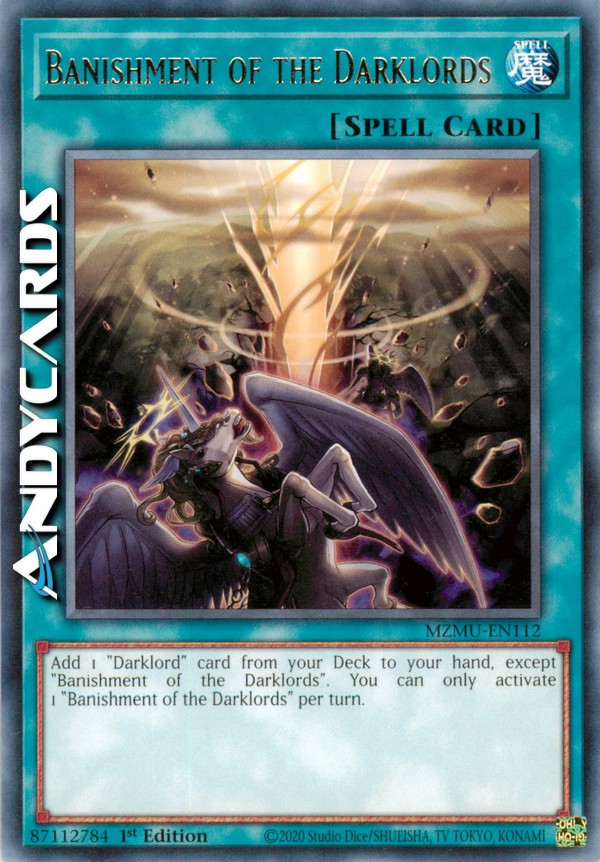 Add 1 "Darklord" card from your Deck to your hand, except "Banishment of the Darklords". You can only activate 1 "Banishment of the Darklords" per turn.