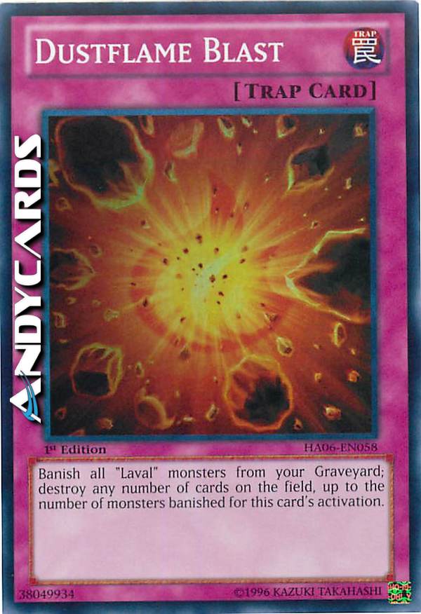 Bandisci tutti i mostri "Laval" dal tuo Cimitero; distruggi un qualsiasi numero di carte sul Terreno, fino al massimo al numero di mostri banditi per l'attivazione di questa carta.