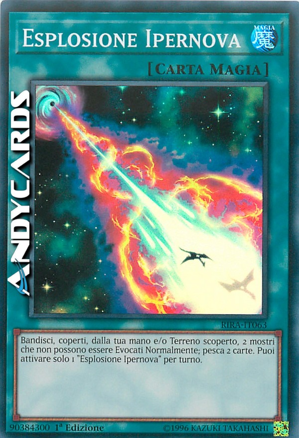 Bandisci, coperti, dalla tua mano e/o Terreno scoperto, 2 mostri che non possono essere Evocati Normalmente; pesca 2 carte. Puoi attivare solo 1 "Esplosione Ipernova" per turno.