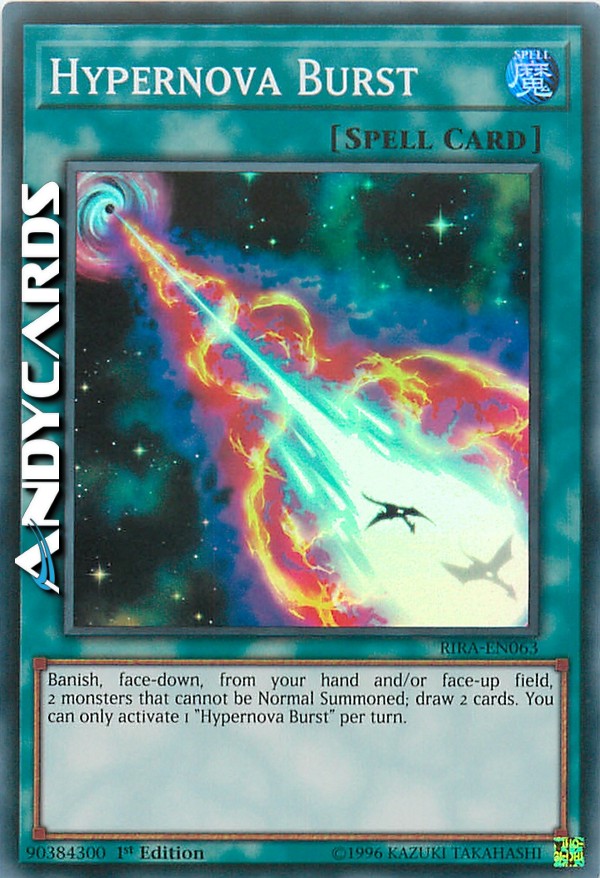 Banish, face-down, from your hand and/or face-up field, 2 monsters that cannot be Normal Summoned; draw 2 cards. You can only activate 1 "Hypernova Burst" per turn.