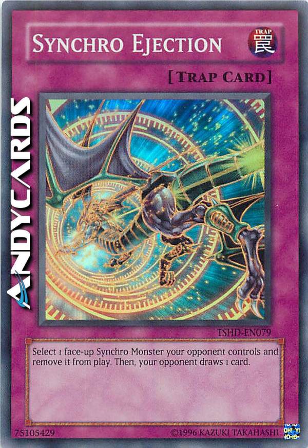 Scegli 1 mostro Synchro scoperto controllato dal tuo avversario e rimuovilo da gioco. Poi, il tuo avversario pesca 1 carta.