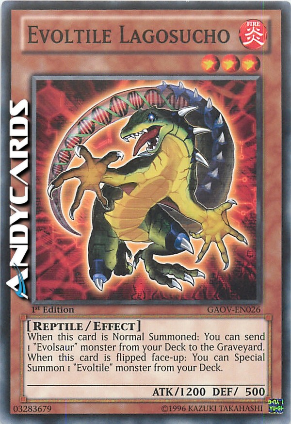 Quando questa carta viene Evocata Normalmente: puoi mandare 1 mostro "Evolsauro" dal tuo Deck al tuo Cimitero. Quando questa carta viene scoperta: puoi Evocare Specialmente 1 mostro "Evoltile" dal tuo Deck.