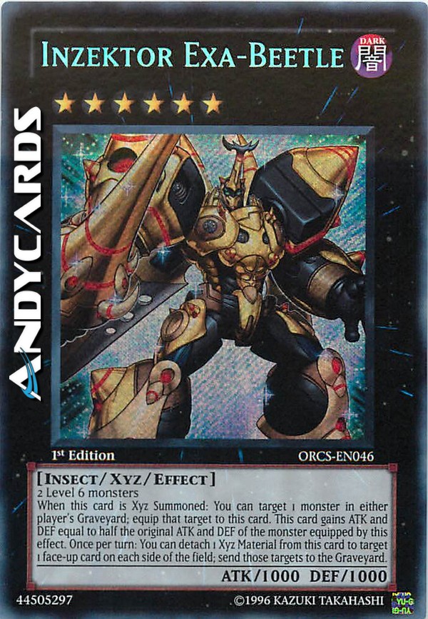 2 mostri di Livello 6 Quando questa carta viene Evocata Xyz: puoi scegliere come bersaglio 1 mostro nel Cimitero di qualsiasi giocatore; equipaggia quel bersaglio a questa carta. Questa carta guadagna ATK e DEF pari alla metà dell'ATK e DEF originali del mostro equipaggiato da questo effetto. Una volta per turno: puoi staccare 1 Materiale Xyz da questa carta per scegliere come bersaglio 1 carta scoperta sul Terreno di ogni giocatore; manda quei bersagli al Cimitero.
