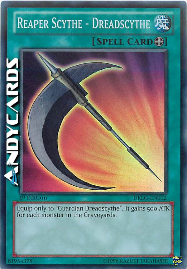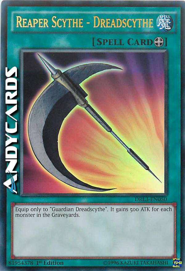 Equip only to "Guardian Dreadscythe". It gains 500 ATK for eachmonster in the Graveyards.