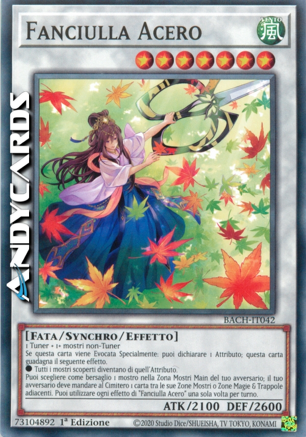 Puoi scegliere come bersaglio 1 mostro nella Zona Mostri Main del tuo avversario; il tuo avversario deve mandare al Cimitero 1 carta tra le sue Zone Mostri o Zone Magie & Trappole adiacenti. Puoi utilizzare ogni effetto di "Fanciulla Acero" una sola volta per turno.