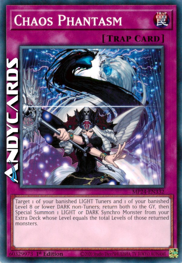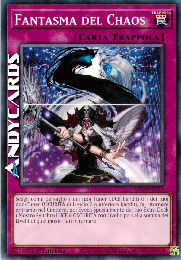 Scegli come bersaglio 1 dei tuoi Tuner LUCE banditi e 1 dei tuoi non-Tuner OSCURITÀ di Livello 8 o inferiore banditi; fai ritornare entrambi nel Cimitero, poi Evoca Specialmente dal tuo Extra Deck 1 Mostro Synchro LUCE o OSCURITÀ con Livello pari alla somma dei Livelli di quei mostri fatti ritornare.