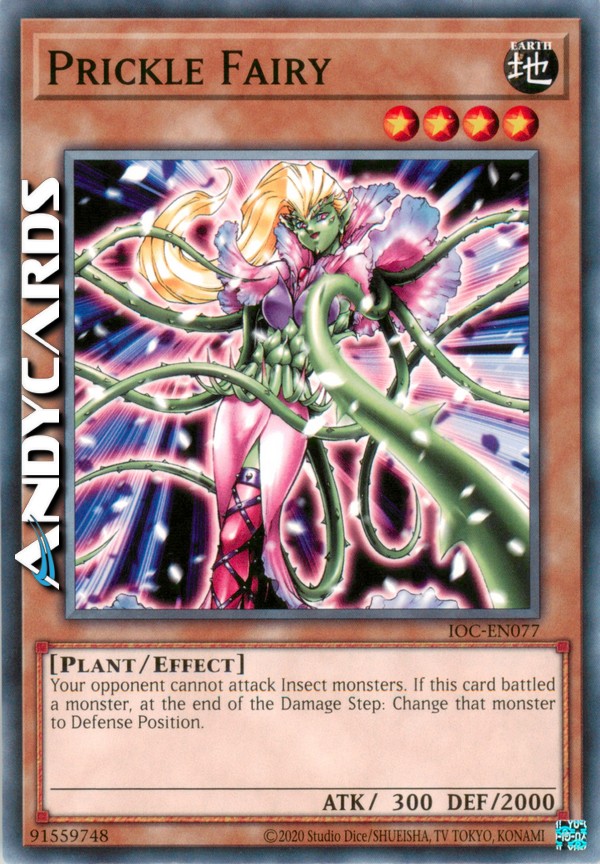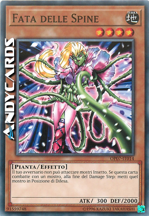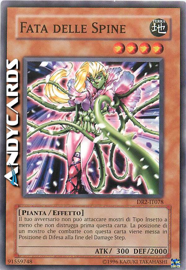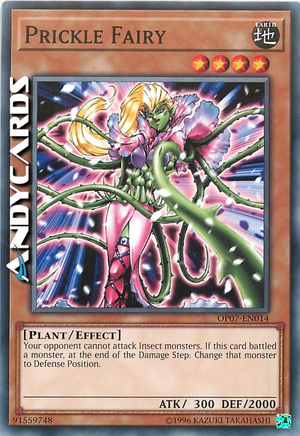 Il tuo avversario non può attaccare mostri di Tipo insetto a meno che non distrugga prima questa carta. La posizione di un mostro che combatte con questa carta viene messa in Posizione di Difesa alla fine del Damage Step.