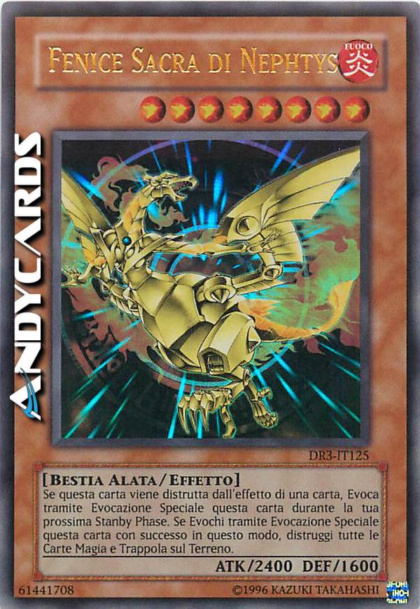 Se questa carta viene distrutta dall'effetto di una carta, Evoca tramite Evocazione Speciale questa carta durante la tua prossima Standby Phase. Se Evochi tramite Evocazione Speciale questa carta con successo in questo modo, distruggi tutte le Carte Magia e Trappola sul Terreno.