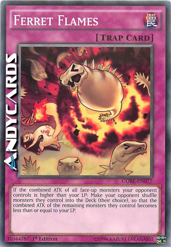 Se la somma degli ATK di tutti i mostri scoperti controllati dal tuo avversario è superiore ai tuoi LP: fai mescolare al tuo avversario nel Deck mostri che lui controlla (di sua scelta) fino a quando la somma degli ATK dei mostri rimanenti che controlla diventa pari o inferiore ai tuoi LP.