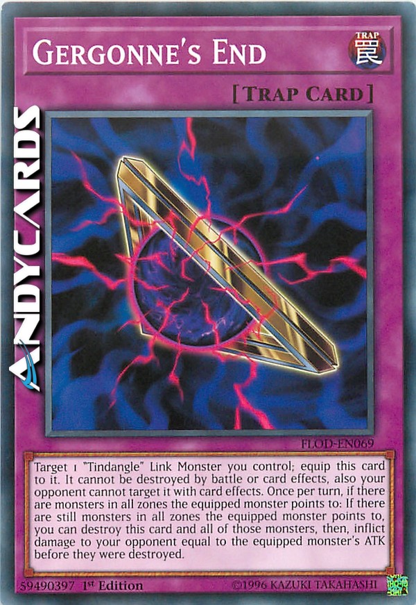 Scegli come bersaglio 1 Mostro Link "Tindangolo" che controlli; equipaggia questa carta ad esso. Non può essere distrutto in battaglia o dagli effetti delle carte, inoltre il tuo avversario non può sceglierlo come bersaglio con gli effetti delle carte. Una volta per turno, se ci sono mostri in tutte le zone puntate dal mostro equipaggiato: se ci sono ancora mostri in tutte le zone puntate dal mostro equipaggiato, puoi distruggere questa carta e tutti quei mostri, poi infliggi al tuo avversario danno pari all'ATK del mostro equipaggiato prima che fossero distrutti.