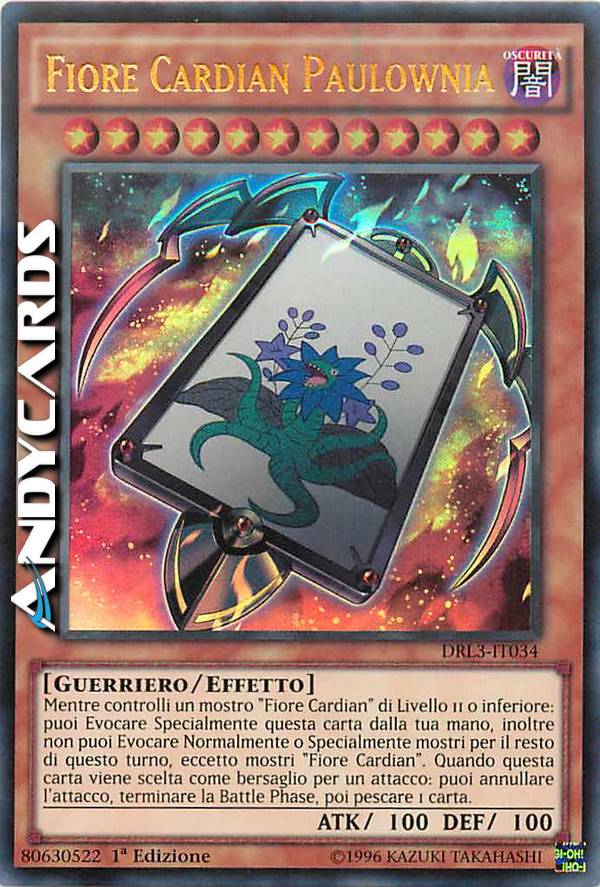 Mentre controlli un mostro "Fiore Cardian" di Livello 11 o inferiore: puoi Evocare Specialmente questa carta dalla tua mano, inoltre non puoi Evocare Normalmente o Specialmente mostri per il resto di questo turno, eccetto mostri "Fiore Cardian". Quando questa carta viene scelta come bersaglio per un attacco: puoi annullare l'attacco, terminare la Battle Phase, poi pescare 1 carta.