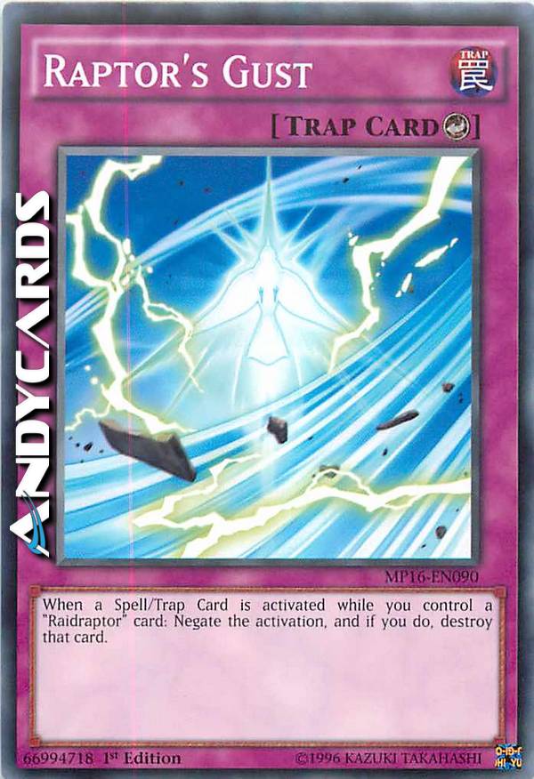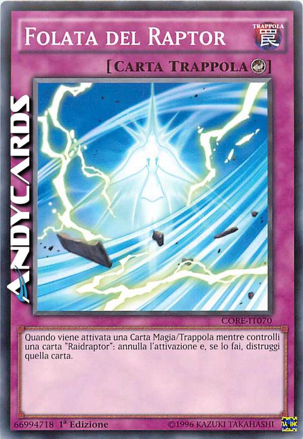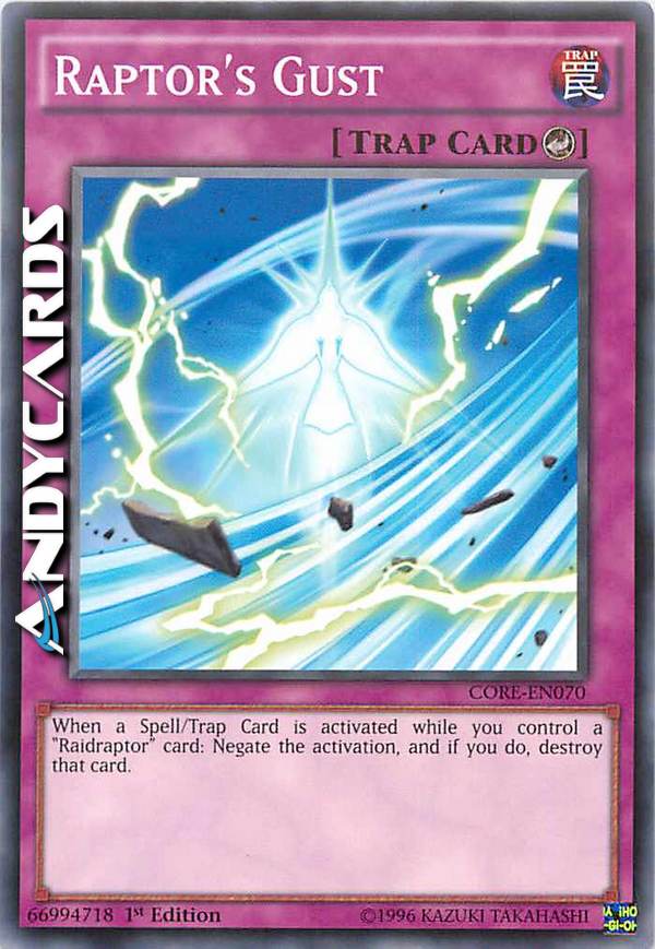 Quando viene attivata una Carta Magia/Trappola mentre controlli una carta "Raidraptor": annulla l'attivazione e, se lo fai, distruggi quella carta.