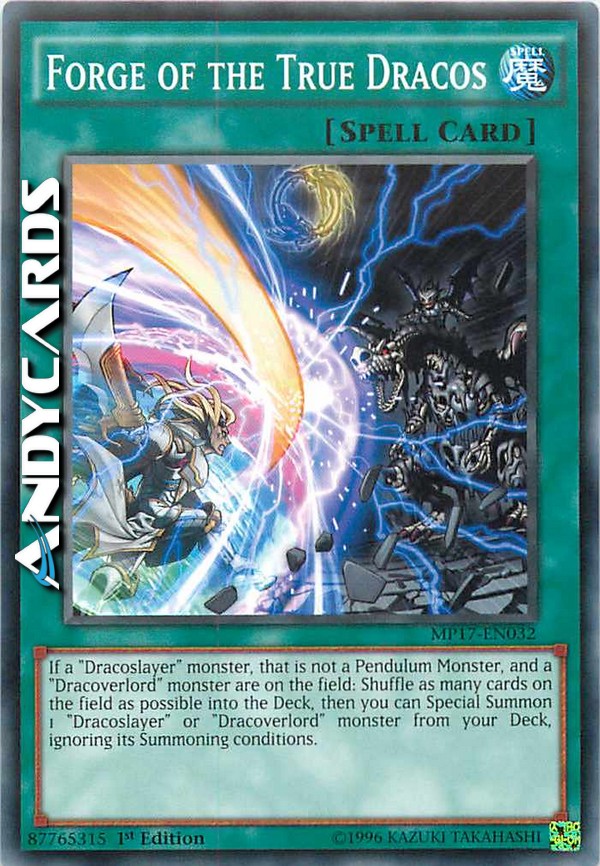 If a "Dracoslayer" monster, that is not a Pendulum Monster, and a "Dracoverlord" monster are on the field: Shuffle as many cards on the field as possible into the Deck, then you can Special Summon 1 "Dracoslayer" or "Dracoverlord" monster from your Deck, ignoring its Summoning conditions.