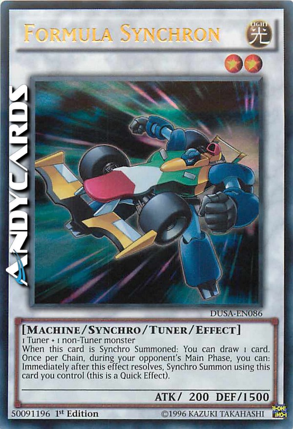 1 Tuner + 1 mostro non-Tuner Quando questa carta viene Synchro Evocata: puoi pescare 1 carta. Una volta per Catena, durante la Main Phase del tuo avversario, puoi (Effetto Rapido): immediatamente dopo che questo effetto si è risolto, Synchro Evoca utilizzando questa carta che controlli.