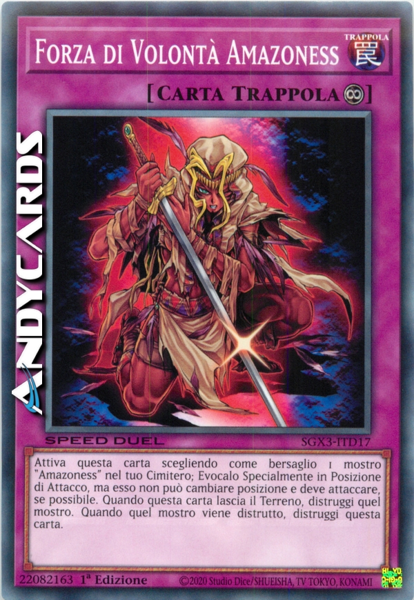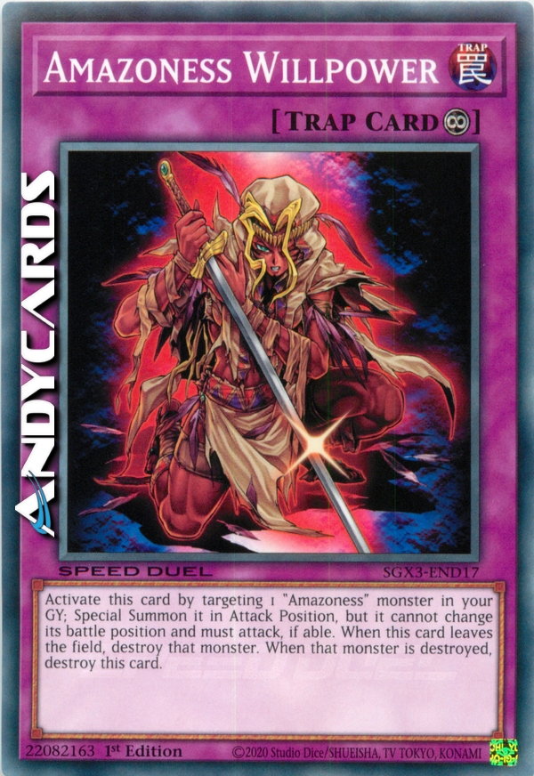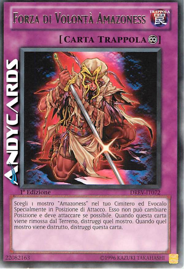 Scegli 1 mostro "amazzoness"nel tuo cimitero ed evocalo specialmente in posizione d'attacco.Esso non può cambiare posizione e deve attaccare se possibile.Quando questa carta viene rimossa dal terreno,distruggi quel mostro.Quando quel mostro viene distrutto,distruggi questa carta.