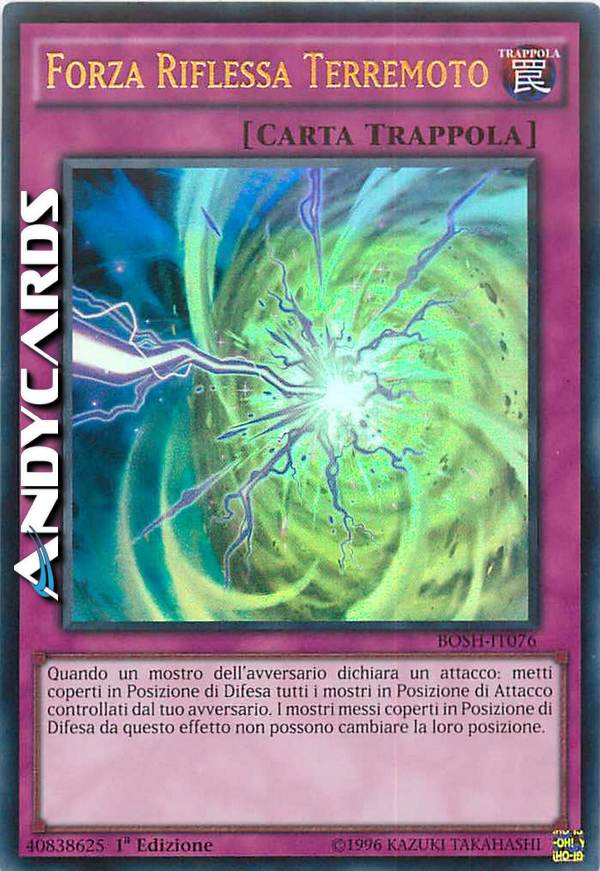 Quando un mostro dell'avversario dichiara un attacco: metti coperti in Posizione di Difesa tutti i mostri in Posizione di Attacco controllati dal tuo avversario. I mostri messi coperti in Posizione di Difesa da questo effetto non possono cambiare la loro posizione.