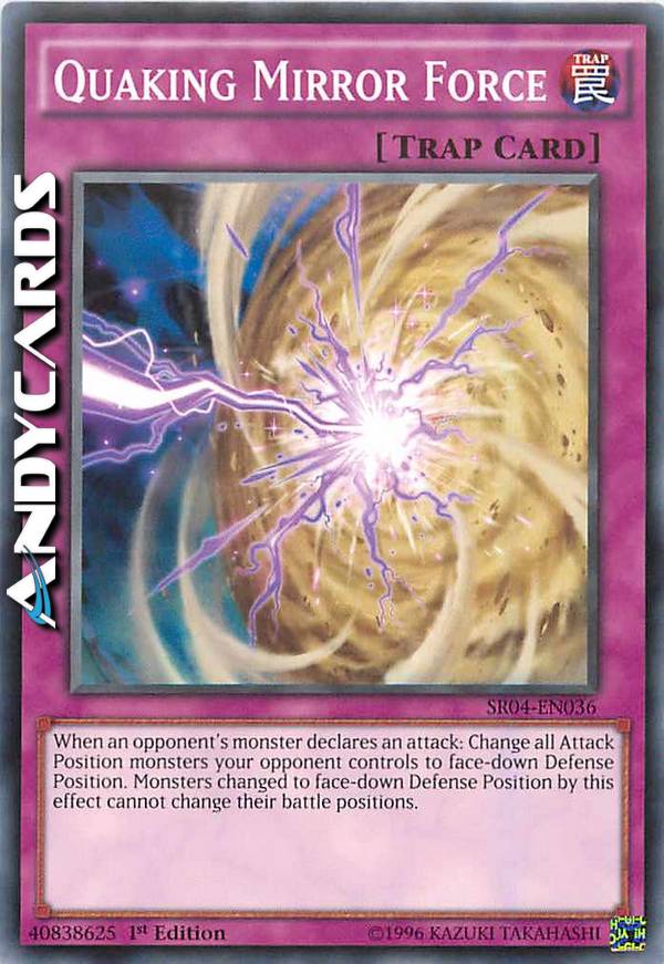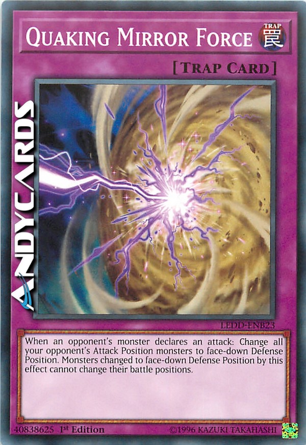 When an opponent's monster declares an attack: Change all your opponent's Attack Position monsters to face-down Defense Position. Monsters changed to face-down Defense Position by this effect cannot change their battle positions.