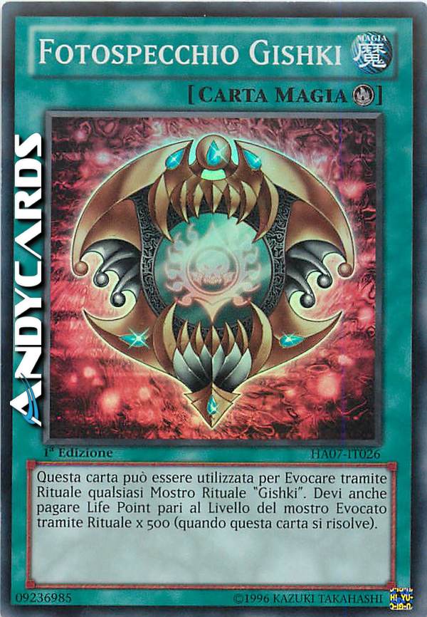 This card can be used to Ritual Summon any "Gishki" Ritual Monster. You must also pay Life Points equal to the Level of the Ritual Summoned monster x 500.