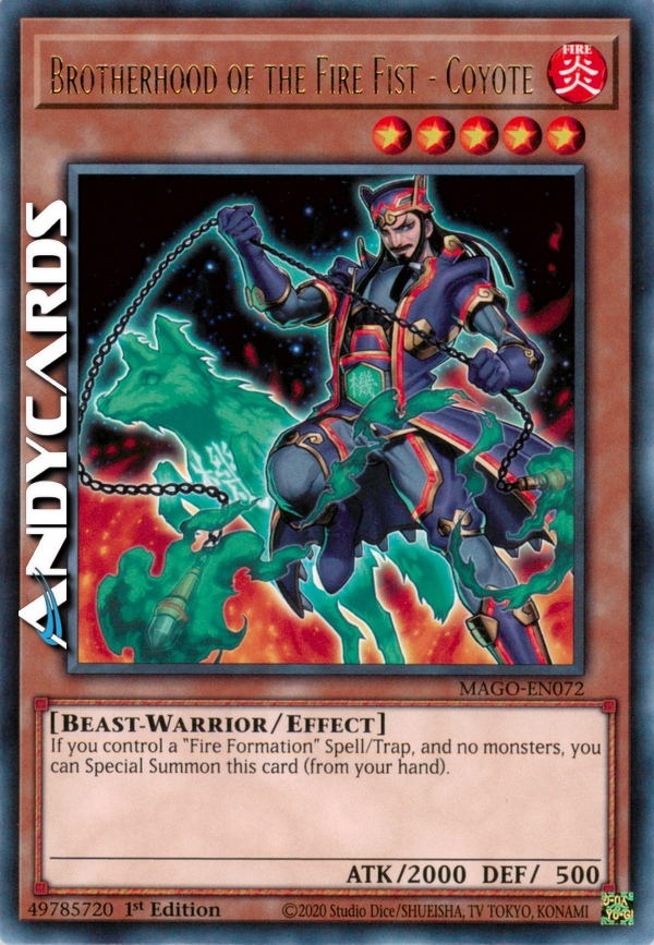 Se controlli una Carta Magia/Trappola "Formazione di Fuoco" e nessun mostro, puoi Evocare Specialmente questa carta (dalla tua mano).