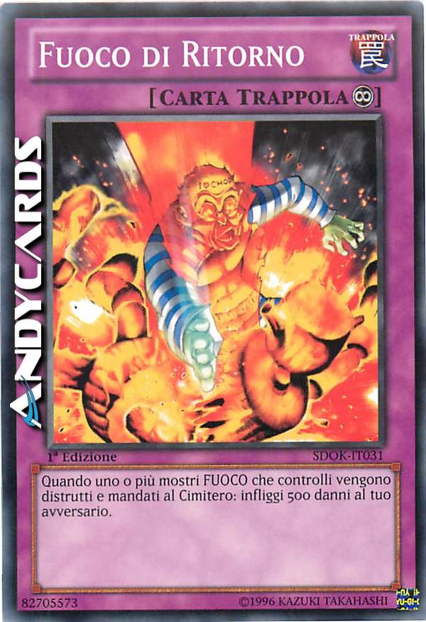 Quando uno o più mostri FUOCO che controlli vengono distrutti e mandati al Cimitero: infliggi 500 danni al tuo avversario.