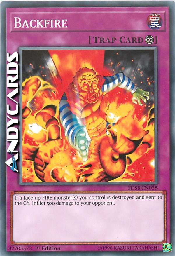 When a FIRE monster on your side of the field is destroyed and sent to the Graveyard, inflict 500 points of damage to your opponent's Life Points.